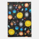 Original fine art design of planets, sun, moon, stars, star clusters, nebulae, galaxies and more by artist Carolyn McFann of Two Purring Cats Studio printed on a quality kitchen towel for Astronomy and space exploration fans.