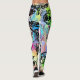 Colourful urban graffiti patchwork pattern leggings featuring bold abstract blocks, expressive brush strokes, scribbles, stars, and mixed-media textures in bright blue, yellow, pink, orange, and black. Energetic and edgy with a modern street art aesthetic, this seamless design is ideal for graffiti art lovers, maximalist style fans, creative teens, and contemporary art enthusiasts.