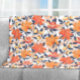 This colourful floral patterned throw blanket features a vibrant orange and yellow botanical print with blue leaves, and coordinates with the pretty floral decor including pillowcases, duvet cover, curtains and area rug found in this shop.