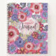 This personalised spiral notebook radiates creative beauty and a personal touch. The cover is a vivid canvas of highly crafted floral pattern that blooms in dazzling shades of red, pink, purple, and blue. The flowers are intertwined with delicate green foliage, creating an intricate botanical tapestry that is both visually delightful and captivating. The notebook features a black spiral binding on the left side, adding a modern touch to its traditional design. In the centre of the cover, there's a white opaque area where "Catherine's Journal" is elegantly inscribed in cursive handwriting. This customisable space adds a personal touch, making it not just a notebook, but a personal journal that can capture one's thoughts, ideas, and memories.