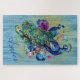 Colourful vibrant peacock plume peafowl tail custo jigsaw puzzle