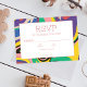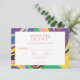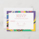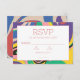 Modern colourful bold abstract rainbow artsy shapes trendy with round frame personalised wedding RSVP card. Pink purple yellow blue colour palette. This card is easily editable. If you need help with the customisation of this product or you need more matching products for this collection kindly message me via Zazzle.