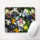 Colourful Victorian Iris Flowers on Black Pattern Mouse Pad