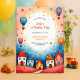 Colourful Village Hot Air Balloon 1st Birthday Invitation