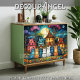Add a playful touch to your decoupage projects with this vibrant and modern design. It features a charming little village with colourful houses and trees, accompanied by a delightful row of seven quirky cats. The contemporary style and cheerful composition make it a unique and eye-catching choice.