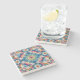 The coasters are gorgeous, a quality feel and heavy weight. They look like a precious archeological find. A rustic stone juxtaposed with a modern floral black and white print. I like the way the print goes slightly imperfect on the cut stone edges giving them a kind-of natural beauty.