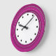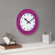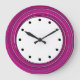 Colourful modern wall clocks with colourful geometric circles pattern clock face in this decorative wall decor clock design for your kitchen, bathroom, or any room in your house you want to add some colour and character. Colours include purple, black, and white.