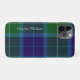 Stylish iPhone case mate phone case done in a traditional blue and green Scottish tartan plaid of the Wallace clan. White text running vertical, on the left side, is ready to personalise. Stylish and great way to protect your smart phone, and makes a great gift idea.