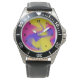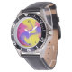 My husband loves the watch, he likes the dial, the graphics, the band, and it keeps perfect time.
