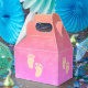 Colourful baby feet watercolor in orange, pink and purple. Custom favour boxes. Add text or image to customise.