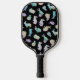 Colourful Watercolor Bunnies Pattern on Black Pickleball Paddle