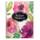 A beautifully feminine watercolor rose pattern custom notebook in shades of pink and purple, customised with your name. Replace the sample text shown in the design template with your name, monogram or other text. To change the font or move the text around, choose the "customise it" button.