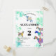 Celebrate your child turning two with this fun collection of colourful, watercolor goats in bright vibrant colours including pink, purple, blue, orange, yellow and aqua on a gorgeous teal green watercolor splash background. A cute farm animals 2nd birthday party budget invitation with baby goats and goats standing on goats. This fun party invitation is easy to personalised to create a unique party invitation suitable for children and adult goat lovers. Colourful psychedelic goat original illustrations by artist Catherine Sweetman