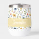 Add this charming watercolor wildflower pattern wine tumbler to your relaxing time. A perfect way to add a touch of whimsical elegance and springtime cheer to your day and keep hydrated. This delicate floral design features a dense, yet airy, repeating pattern of hand-painted wild poppies, forget-me-nots, and tiny meadow blooms in a beautiful palette of soft yellow, dusty blue, and pink. The light and airy watercolor style provides a refreshing and vintage-inspired aesthetic, making this wine tumbler a stand out and an envy to your friends. Make the wine tumbler truly your own by adding your name or your initials or your own text.