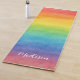 It's colourful and vibrent yoga mat design. It has watercolor wash rainbow colours which gives it fun and bright look. It also has typography script text monogram which you can easily customise with your name and create your own design.