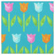 Colourful Watercolor Tulips in Pink, Blue, Orange Fabric