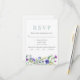 This pretty RSVP card is the perfect addition to any spring wedding. The vibrant watercolor wildflowers in shades of purple and blue, along with the bluish green leaves, create a stunning floral garland placed at the bottom of the card that will surely catch the eye of your guests. It also includes a meal choice section for your guests' convenience. The back of the card showcases a charming round frame with the initials of the happy couple, adding a personal touch to this already delightful card. Don't miss out on the opportunity to impress your guests with this colourful and elegant RSVP card.