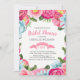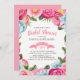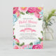 Elegant colourful flowers and leafs watercolors illustration wreath frame with reversible pink and white background, Bridal shower customisable template.
