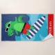 Have a super time with our Fun, Colourful, Surfing Alligator Colour Block Beach Towel! This bright, bold, graphic features a cute alligator surfing on a large sea blue wave, all while wearing his cool sun glasses!. Personalise with your favourite beach-goers name and bring it to the pool, camp or beach all summer long. Check out Benson Hall, on Zazzle, to see our many great designs and products! See ya later Alligator!