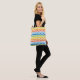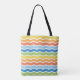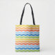Yellow, orange, blue, green and white colours, a tote bag designed with a colourful wave pattern. Customise the tote bag pattern size among other options.