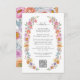 Colourful Wedding Enclosure Card. Keep your guests informed with a beautifully designed details card that’s as stunning as the rest of your suite. Ideal for a spring, summer, or whimsical fall event, this card features an elegant watercolor wreath filled with colourful peonies in blush pink, fuchsia, orange, and golden yellow, along with lavender purple roses, blue delphinium, daisies, wildflowers, and a soft butterfly for added charm. A QR code on the front provides quick access to wedding info, while the back showcases a coordinating pattern for a cohesive finish. Create a stylish, helpful piece that ties your entire wedding vision together—start personalising today.