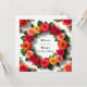 A vibrant watercolor illustration featuring a colourful floral wreath adorned with vividly bright blossoms and green leaves, presented on a plain white background, perfect for invitations or decorative designs.