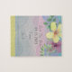 Modern, elegant technicolor pastel wedding save the date invitation puzzle with watercolor greenery and giant yellow and purple pink flowers. Unforgettable wedding announcement! Perfect gift for small cohort of your dearest and most special visitors. Your guest will feel the excite when you send to them this unique, adorable and memorable favour that hold some personal significance to them and keep the forever lasting memory after the wedding day!