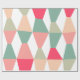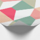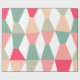 An original abstract design made up of columns or rows of wedge like shapes in alternating in colours and tones in a palette of five harmonious colours.