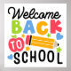 A cheerful and celebratory illustration that says “Welcome Back to School” in bold, multicolored lettering. The word “BACK” bursts with personality—each letter in a different bright hue—while “TO” is cleverly nestled inside a red apple graphic. A playful yellow pencil stretches horizontally across the middle, adding a classic school touch. Whimsical accents like green stars and blue hearts dance around the typography, creating a fun and inviting atmosphere ideal for kicking off the school year with excitement. Perfect for customisable classroom decor, event materials, or student-focused designs.