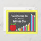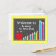 This Welcome Back To School postcard features a chalkboard theme accented with coloured pencils and a red apple. The backside features customisable text for you to add your personal message.