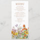 Colourful Wild Flowers Country Wedding Menu features pretty country flowers in orange, yellow, purple and pink on a white background with your custom menu above. Personalise by editing the text in the text boxes. Designed for you by ©Evco Studio www.zazzle.com/store/evcostudio