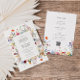 Celebrate in style with our vibrant all-in-one watercolor wildflower wedding invitation, a stunning blend of nature's beauty and artistic elegance. This invitation is designed to captivate your guests with its eye-catching array of colourful lush wildflowers, making it the perfect choice for a joyful and memorable celebration.