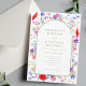 Beautiful watercolor floral elegant Simple Green arch wedding invitation with colourful wildflowers and ideal for spring or summer wedding. A whimsical yet stylish design with modern typography script with easy to personalise templates in Green. Wildflower paintings include vibrant red poppies, cornflowers, cosmos flowers, forget me nots and billy buttons in purple, pink, peach, sage green, teal, orange and blue. Original botanical artwork by artist Catherine Sweetman
