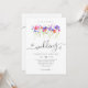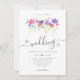 Colourful Wildflower Boho Wedding Invitation with RSVP wedding website QR code, a stunning blend of vibrant bright colours bringing garden charm and elegant sophistication. This watercolor design showcases hand-painted wildflowers in a vibrant garden meadow, with a rich palette of hot pink, blue, purple, orange, yellow, coral and blue, capturing the warmth and beauty of the spring, summer or fall season on a crisp white background.