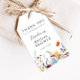 The tag features a beautifully crafted floral border with a vibrant array of hand-painted watercolor wildflowers, such as poppies, lavender and iris, in a kaleidoscope of colours, evoking the charm of a blooming meadow and adding a touch of whimsy and natural beauty.