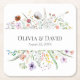 Elevate your reception tables with this Colourful Wildflower Meadow square wedding coaster, showcasing hand-painted watercolor botanicals in soft garden hues. Perfect for rustic, cottage-core, meadow and outdoor celebrations. Customise with your names and date for a polished, coordinated look that enhances your wedding décor while protecting tabletops.