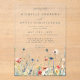 This design features a border of vibrant wildflowers in shades of red, yellow, green, teal, and blue. Perfect for casual summer weddings.