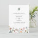 A pretty wedding save the date featuring colourful watercolor wildflowers and a single blue butterfly at the top. Personalise with your details in charcoal.
