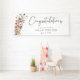 Colourful Wildflowers Congratulations Banner. Celebrate in full bloom with this stunning graduation congratulations banner, adorned with a side bouquet of hand‐painted boho wildflowers in dark blue, bright pink, blush pink, golden yellow, vibrant red, and sage green. Perfect for adding a festive touch to your graduation event, it lets you personalise the message, colours, and backgrounds to craft a custom decoration that honours the graduate—let your festivities burst with creative energy!