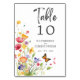 The Colourful Watercolor Wildflowers Elegant Wedding Table Number showcases a vibrant array of wildflowers in jewel tones of purple, orange, red, and yellow, with the option to include guest names on the reverse side. Its formal design and elegant wording contribute to the sophistication of your wedding festivities. This design is especially suited for weddings in the Spring and Summer seasons.