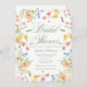Celebrate love in bloom with this elegant bridal shower invitation featuring a natural, hand-painted wildflower frame. Watercolor florals in soft peach, yellow, blue, blush pink, and lush greenery surround the design, creating a meadow-inspired floral border. The bride’s name and event details are elegantly scripted in chic green script, giving the piece a charming, modern-boho vibe.