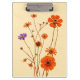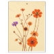 Bent and broken wildflowers in red-orange, blue-purple, and yellow-orange are pressed onto a faded yellow ochre background marred with crooked lines. Beautiful in all its imperfections!