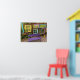 A very fun spot to sit in the garden! Colourful windows with a bold purple bench. Very cute garden decor.