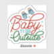 Set against a vibrant background, this festive sticker highlights the phrase “Baby it’s cold outside” along with adorable winter mittens.