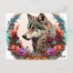 Colourful Wolf With Flowers Postcard