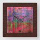 Colourful Wood Grain Burlap Border #2 Square Wall Clock