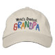 Hat is very well made. GRANDPA is stitched in bright, vibrant colors. Brighter than expected.