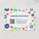 A colourful Y2K flower business card for a handmade clothing brand, featuring a groovy boho botanical floral pattern with a whimsical girly style and a QR code for fashion branding.