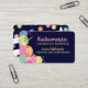 Cute business card with colourful balls of yarn and knitting needles on the back, personalised with your choice of background colour, perfect for craft shows or product tags.