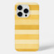 A cheerful and colourful iPhone 15 pro case with a modern stripes pattern in shades of yellow, mustard, and light yellow.